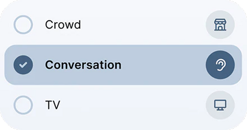 Switch between six hearing modes designed by audiologists and Grammy-winning sound engineers. Enjoy clear sound whether you’re chatting, watching TV, or out in a crowd.